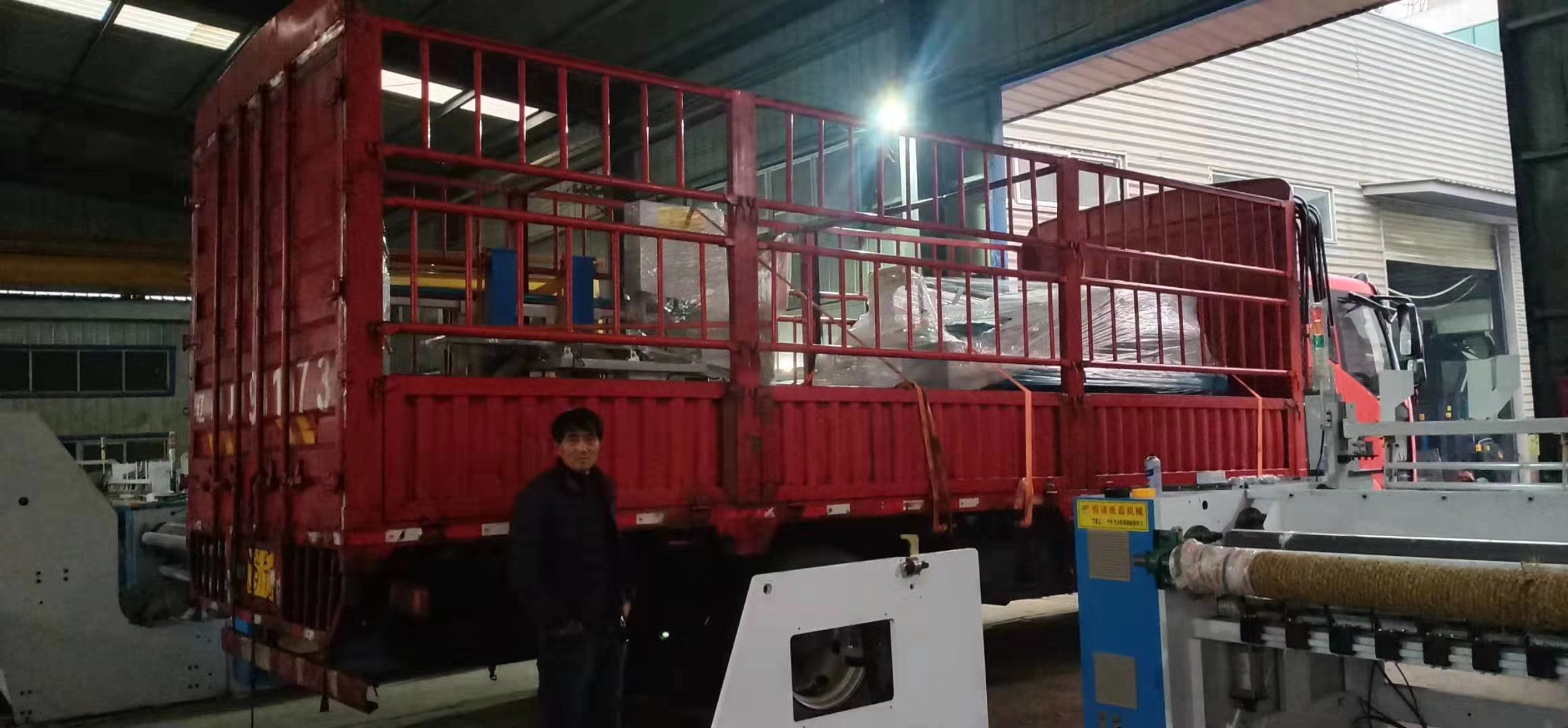 在有幾天就要過年了,不論是想趕在年前的最后一撥旺季,還是想年后直接開業(yè)生產(chǎn)的客戶都非常多,很多客戶都比較著急要設(shè)備,我們也在加班加點(diǎn)的生產(chǎn)設(shè)備。為了能夠讓客戶早日收到設(shè)備,在昨天山東煙臺的劉先生訂購的全自動衛(wèi)生紙復(fù)卷機(jī)發(fā)了貨,這兩天我們這天氣不好,一直在下雨,但是為了客戶能夠在早日開始生產(chǎn),把車開進(jìn)了廠房,為客戶拉裝設(shè)備。